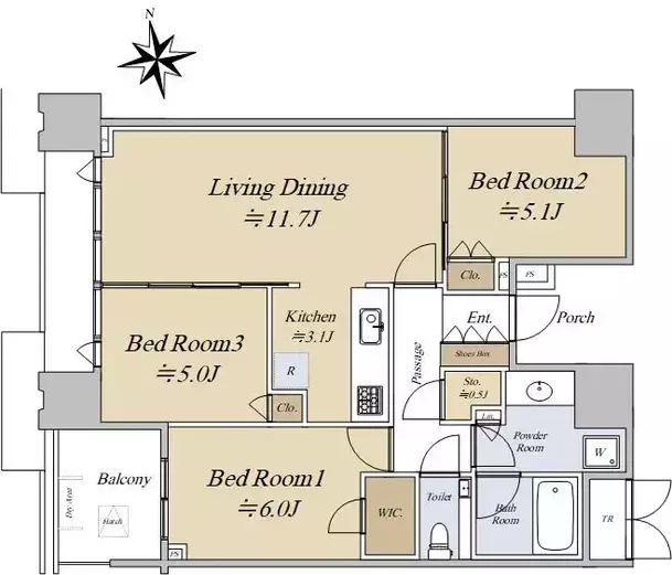- 3チャンバ ホール 1トイレ