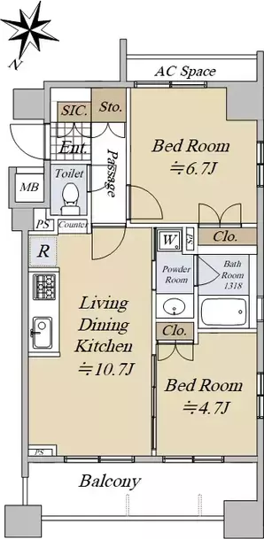 - 2チャンバ ホール 1トイレ